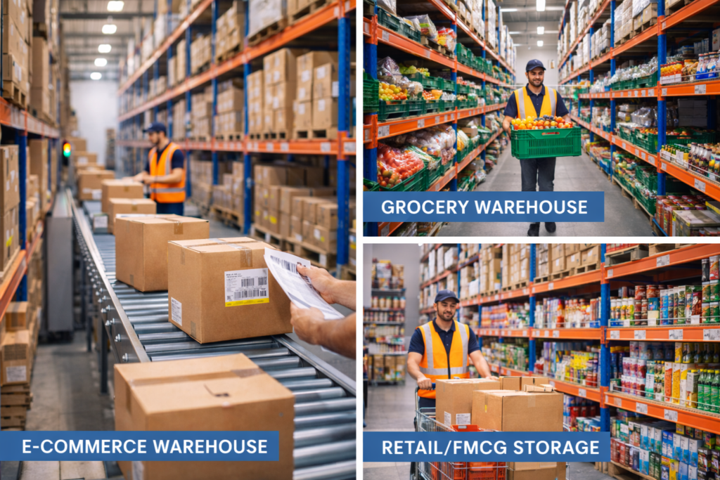 - Retail and FMCG warehouses
